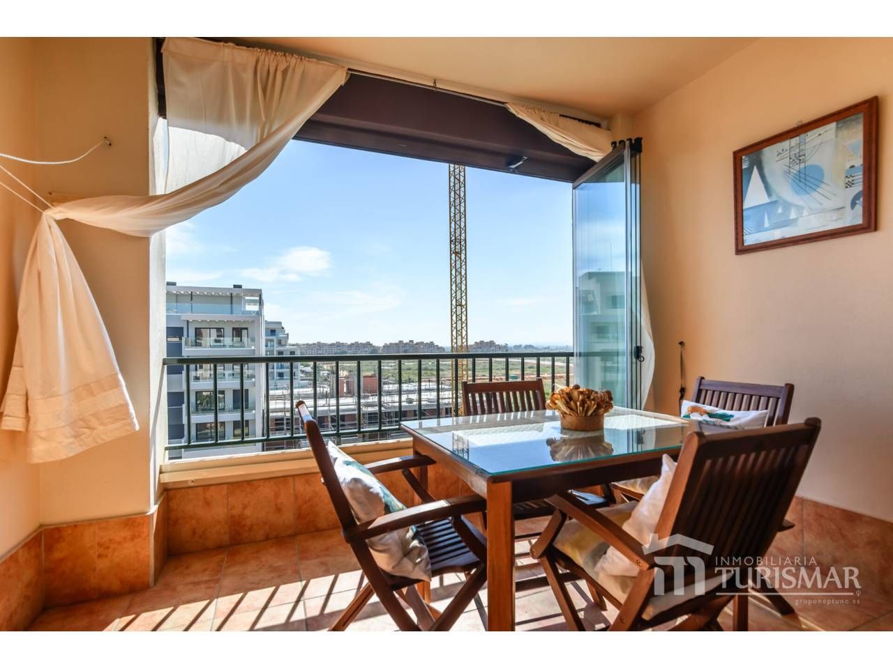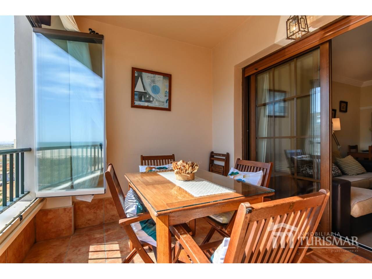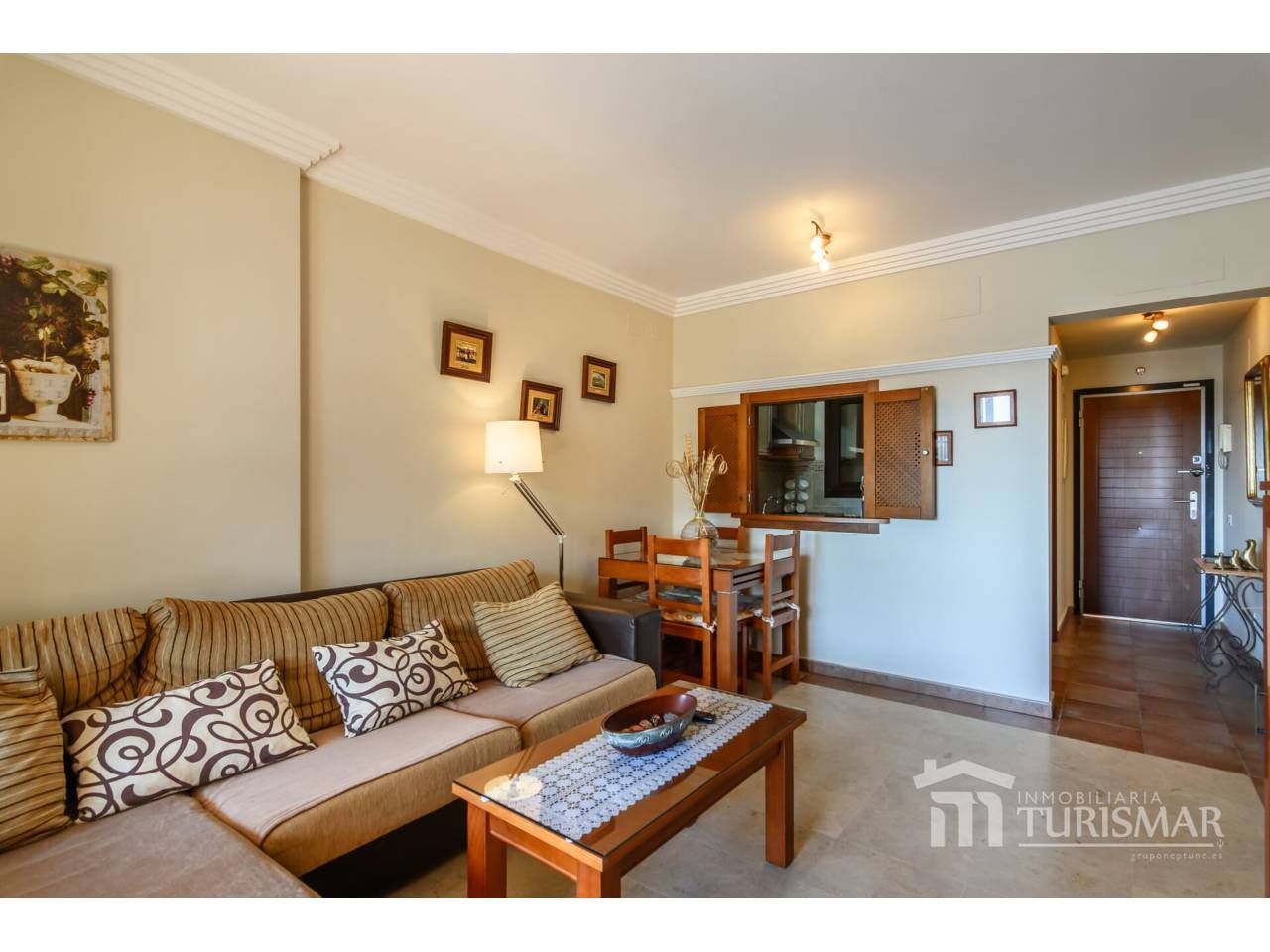 Esplendido apartamento de 71 m2. CUARTA PLANTA. En primera linea de playa. Amueblado. Con una terraza de 9 m2 teniendo una orientación Oeste. Consta de salón/comedor con salida a la terraza. Cocina equipada. Lavadero. Tiene 2 dormitorios con armarios empotrados. 1 baño completo. Ascensor. Parking. Piscina. Pistas de padles. Hermosas áreas comunes. Este residencial esta a pocos metros de lugares de ocio, restaurantes, entre otros. Año de construcción 2008.