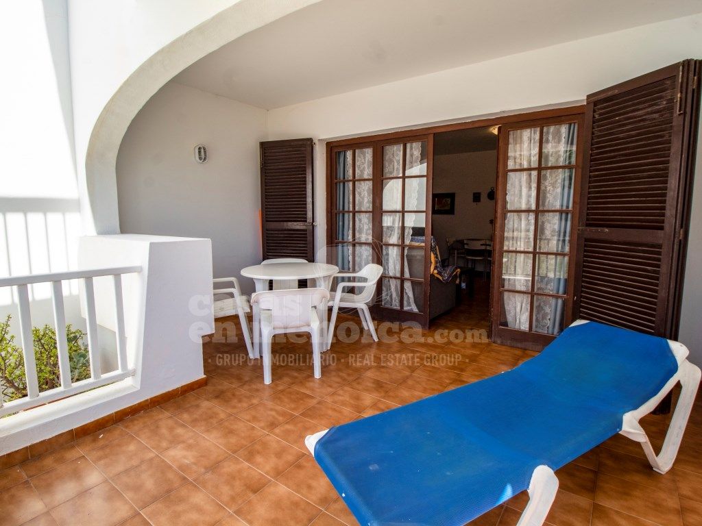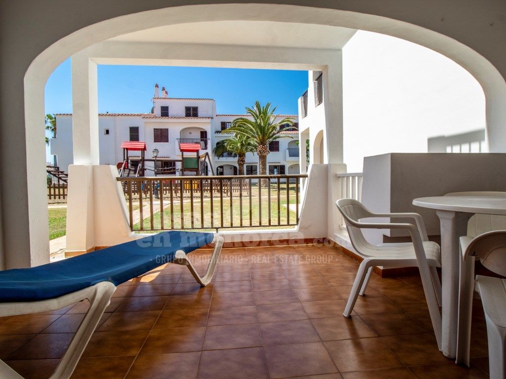 Esta propiedad forma parte de un complejo de apartamentos bien mantenido en la urbanización de Cala'n Porter, en una calle céntrica cercana a todos los servicios. El complejo incluye amplios jardines comunitarios, una hermosa zona de baño con varias piscinas y toboganes infantiles, además de servicio de bar y aparcamiento exterior común. Todo esto, a solo unos minutos a pie de la playa.