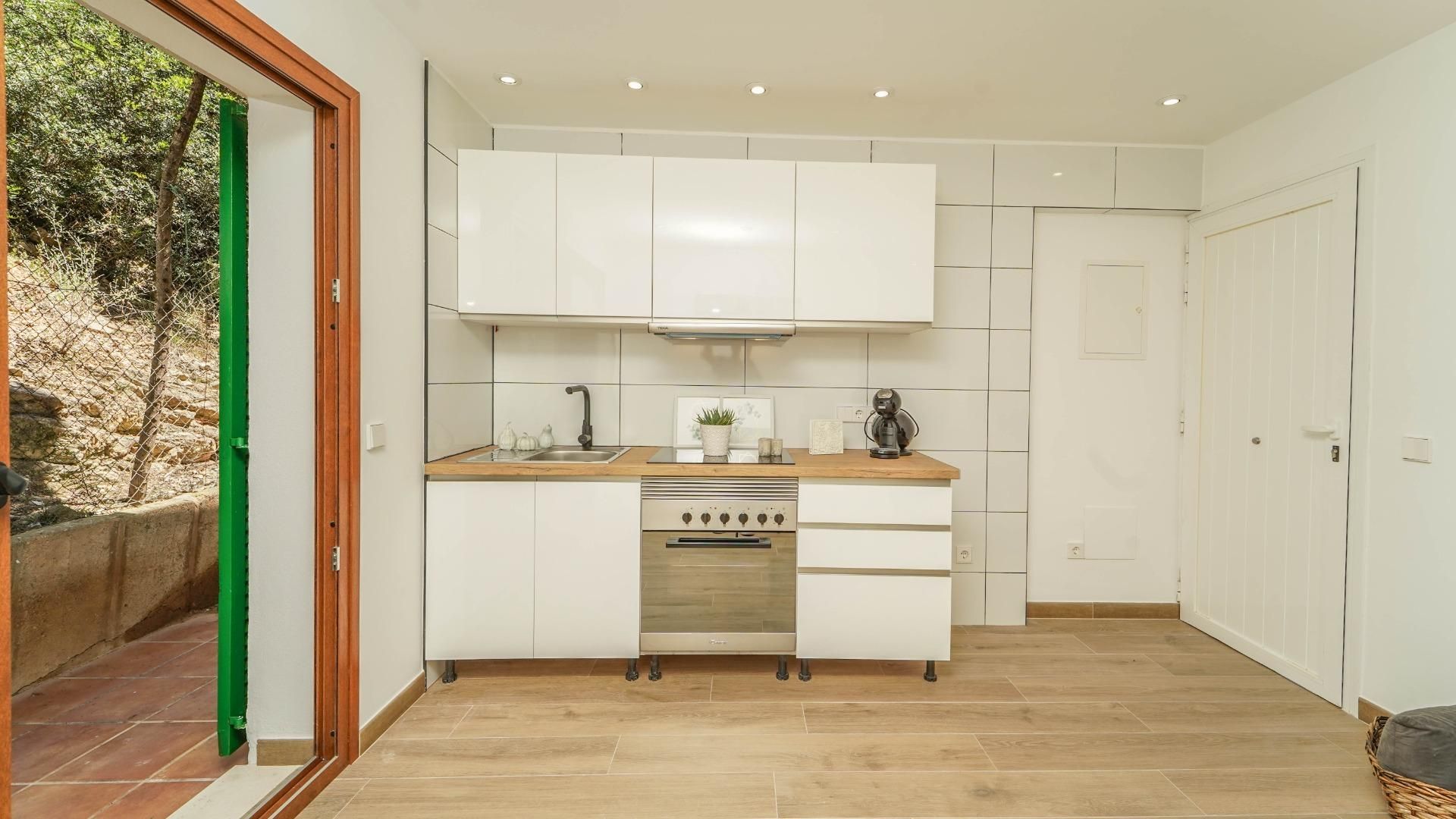 Cocina Equipada y Amueblada Moderna: La cocina tipo americana está casi totalmente equipada con electrodomésticos modernos, a excepción del frigorífico, se incluye la lavadora.