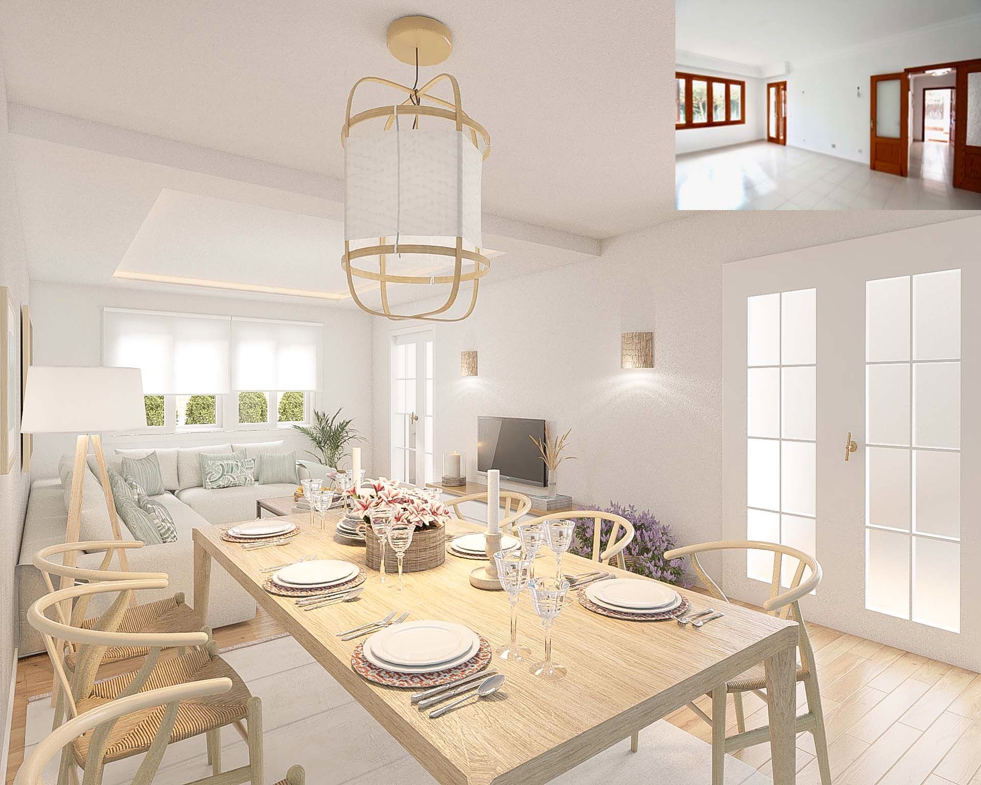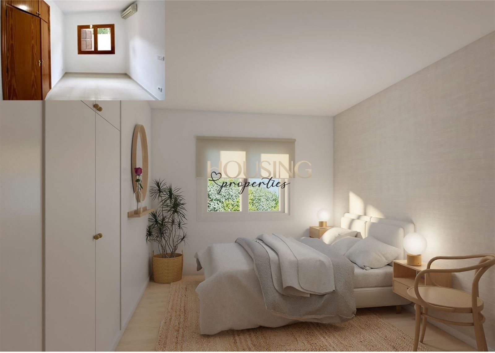 Böden aus Steinzeug. Nordische Innenschreinerarbeiten und Außenschreinerarbeiten aus Nordischem Holz mit Climalit. Mallorquinische Fensterläden. Klimaanlage warm/kalt im Wohnzimmer und zwei der Schlafzimmer.
