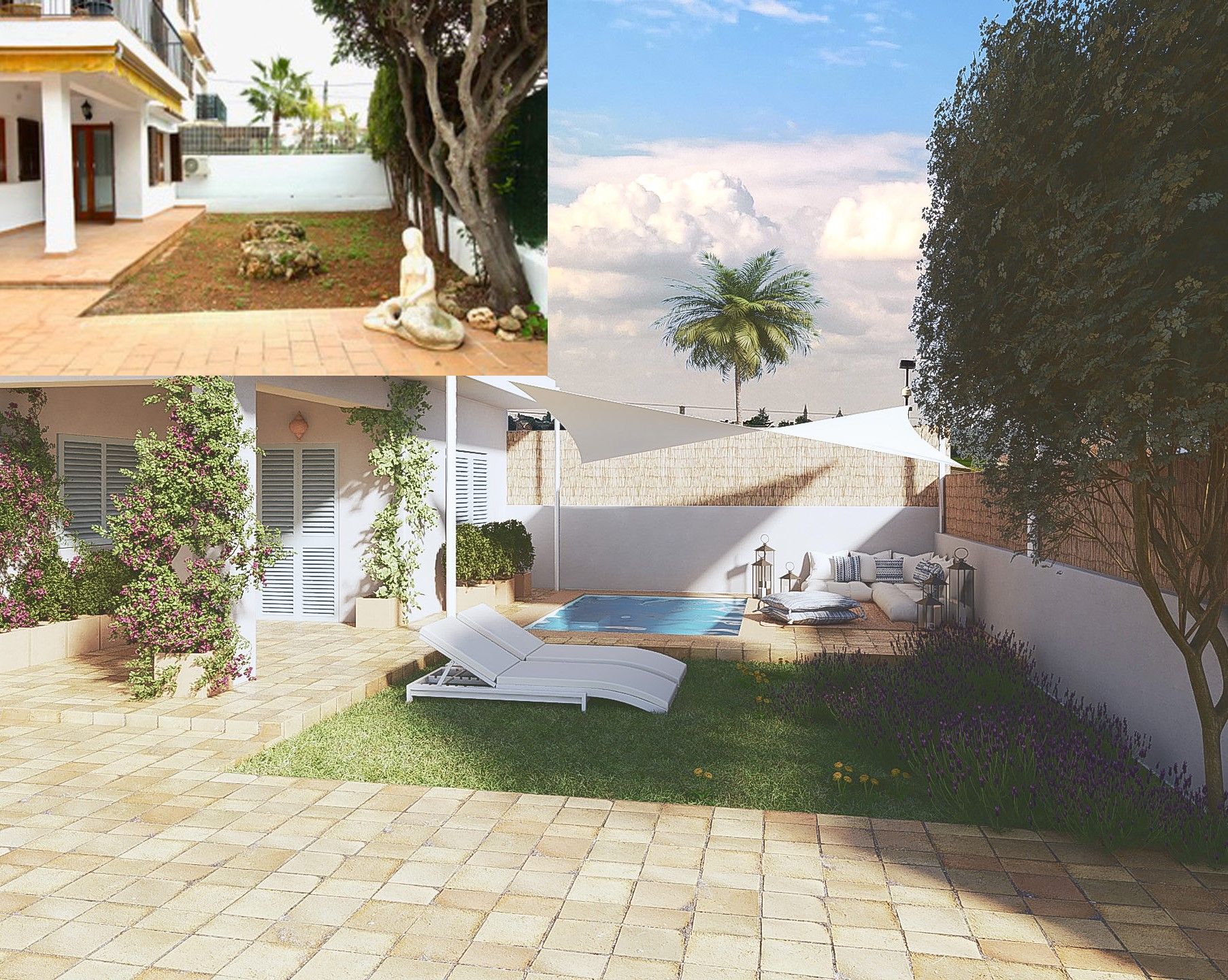 En el propio jardín hay espacio habilitado para dejar coche o bien darle uso de terraza.
