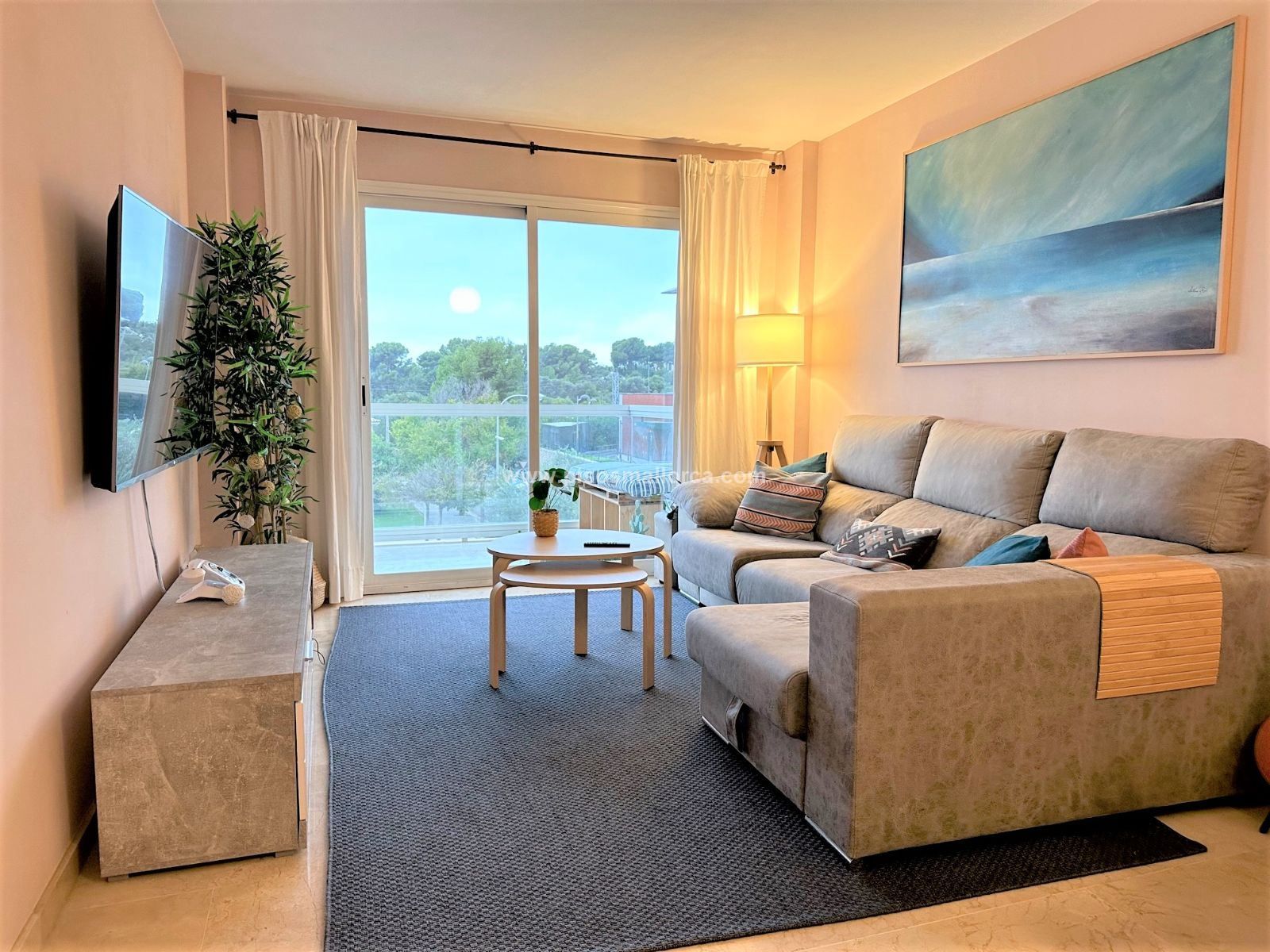 La vivienda está distribuida en amplio salón-comedor, muy luminoso y con salida a terraza de unos 6 m2, cocina amueblada y equipada con electrodomésticos (frigorífico, placa inducción, horno y lavavajillas), zona de coladuría con lavadora, 2 dormitorios dobles con armarios empotrados y 2 baños completos (uno con bañera y otro con plato de ducha).