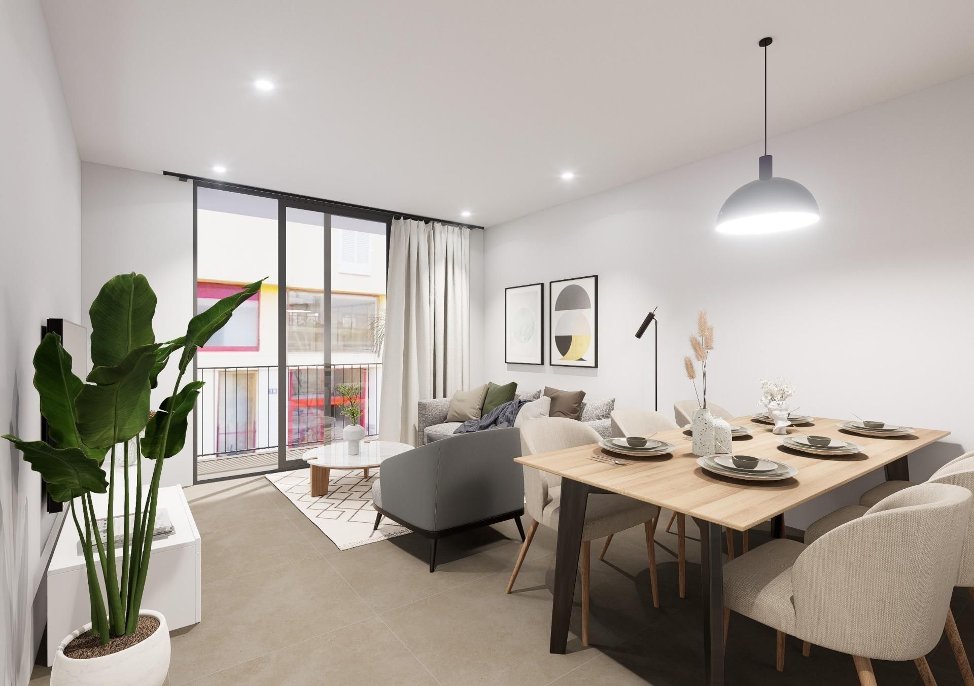 Diseñada en un concepto de vivienda actual y funcional, se distribuye en; salón/comedor con cocina abierta, dos dormitorios ( uno de ellos con baño en suite), baño completo y zona de lavado.
