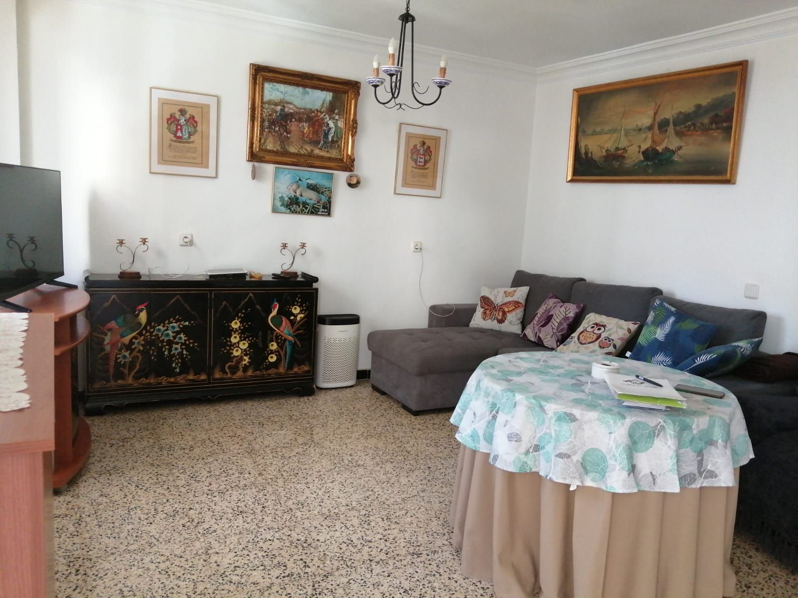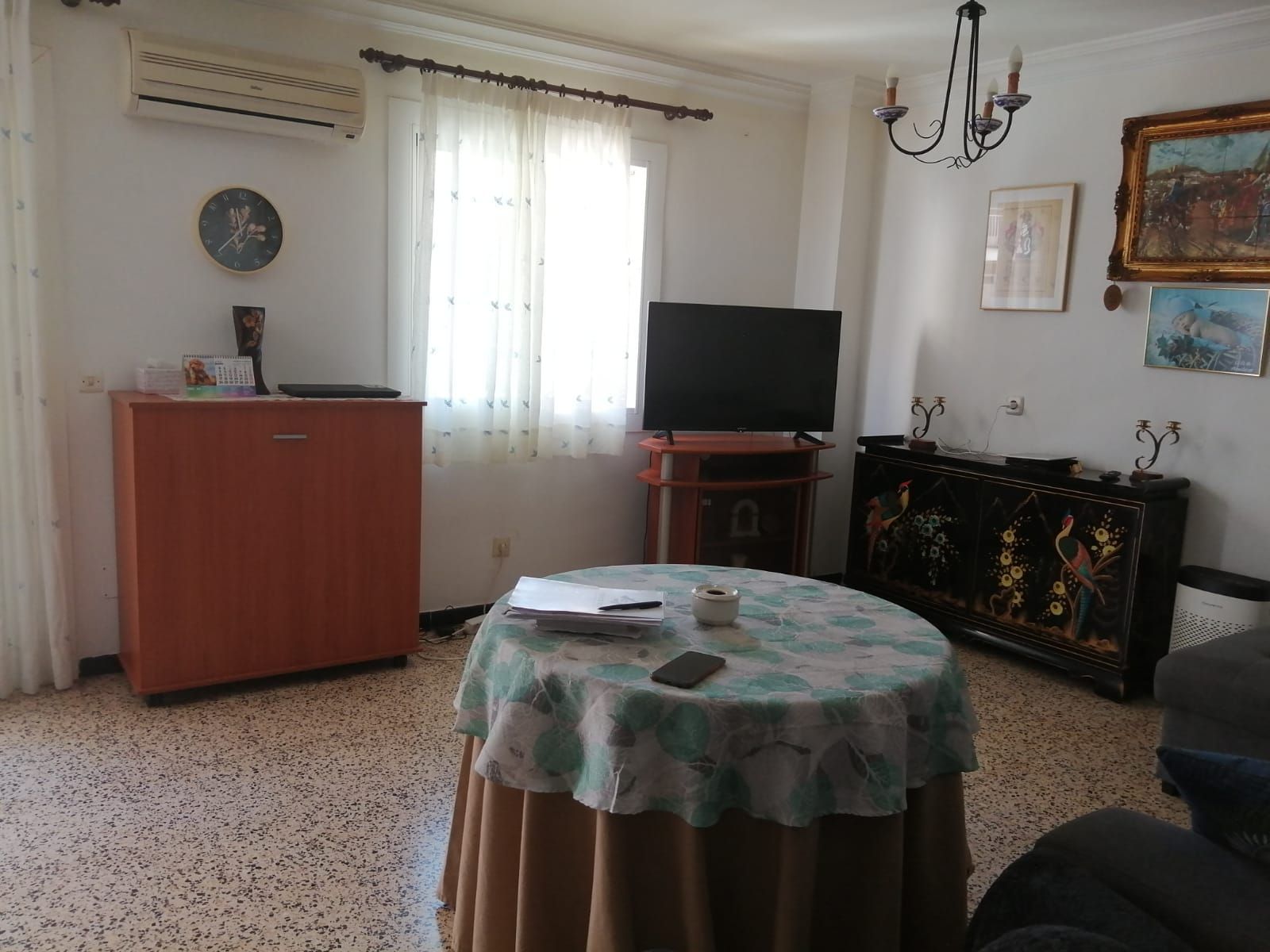 Piso muy luminoso y soleado de 120 m2, distribuido en 3 dormitorios, 2 baños con plato de ducha, cocina reformada de hace aproximadamente unos 10 años, con salida a una coladuría, trastero, un gran salon _ comedor con salida a balcón.
