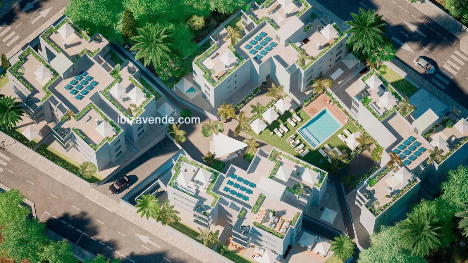 La urbanización se encuentra en un tranquilo barrio residencial, junto al IES Sa Serra y en una ubicación idónea cerca de la bahía y al centro de Sant Antoni, así como a las carreteras de Eivissa y Sant Josep.
