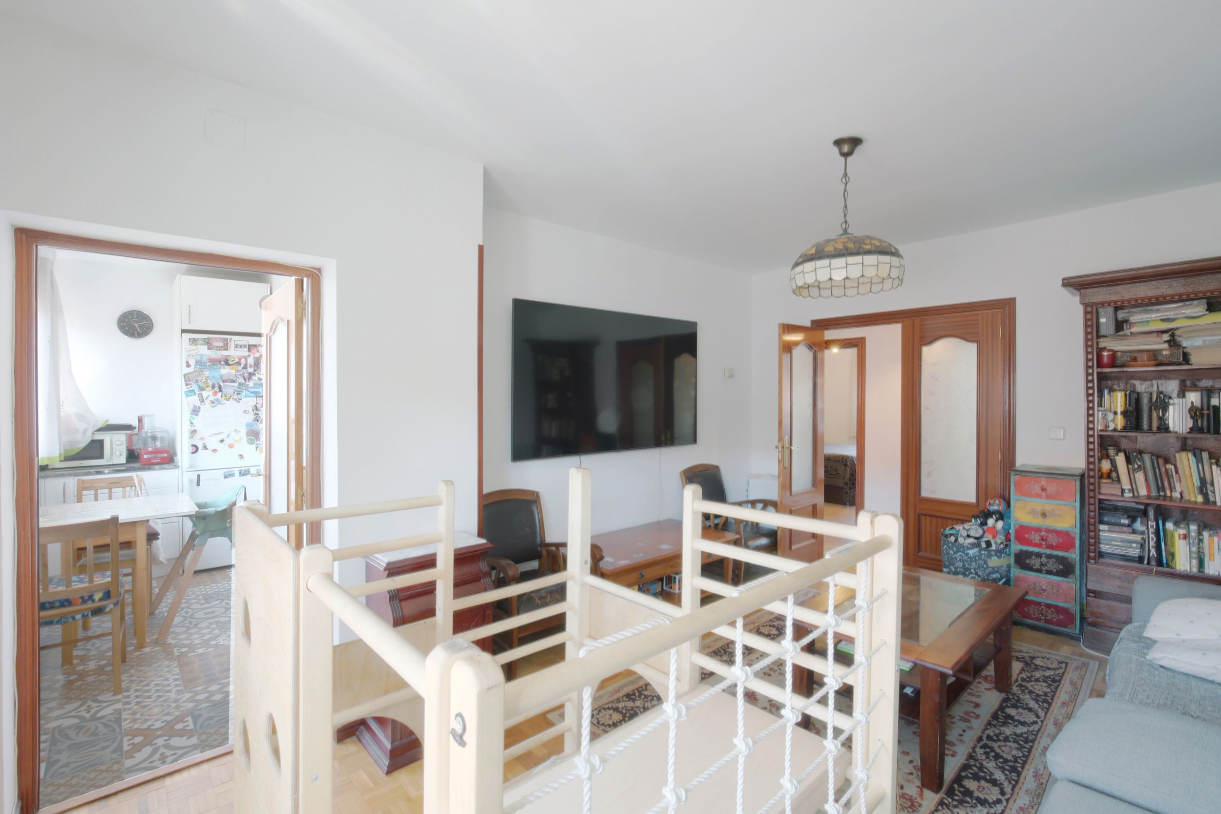 El salón es amplio y luminoso, gracias a una ventana orientada al oeste que permite la entrada de luz natural, al igual que la cocina reformada en 2015, donde se ha optimizado el espacio. Se puede acceder a la cocina directamente desde el salón. Ambas estancias cuentan con vistas al Río Manzanares a través de sus ventanas.