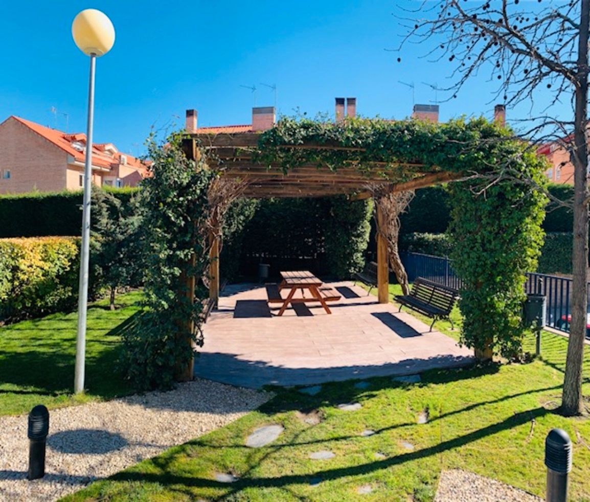Urbanización con piscina, pista de pádel, merendero y zona infantil.