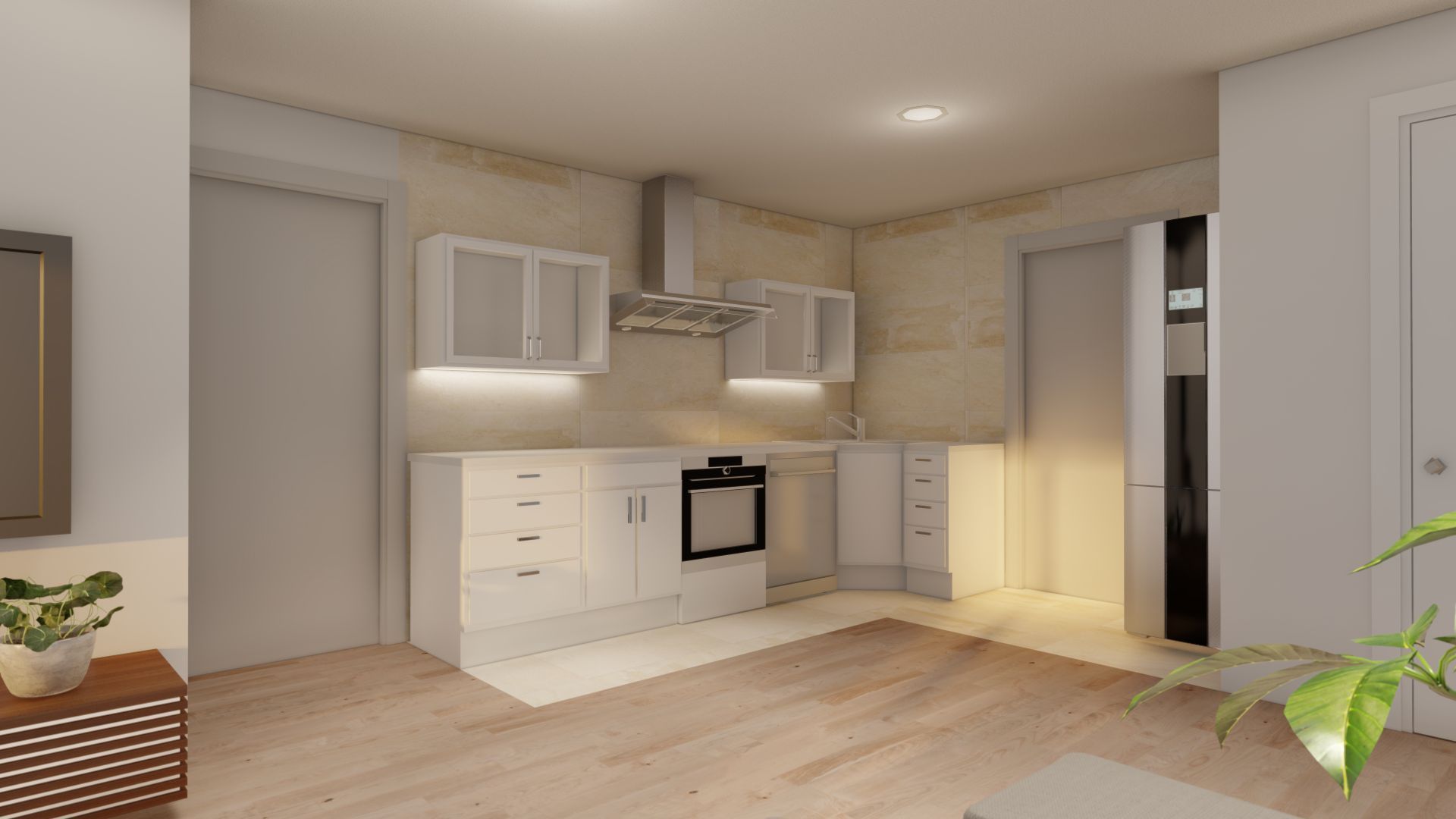 - Cocina americana: Esta vivienda ofrece la posibilidad de adaptar una cocina a tu gusto, con espacio suficiente para electrodomésticos de última generación y acabados de alta calidad.