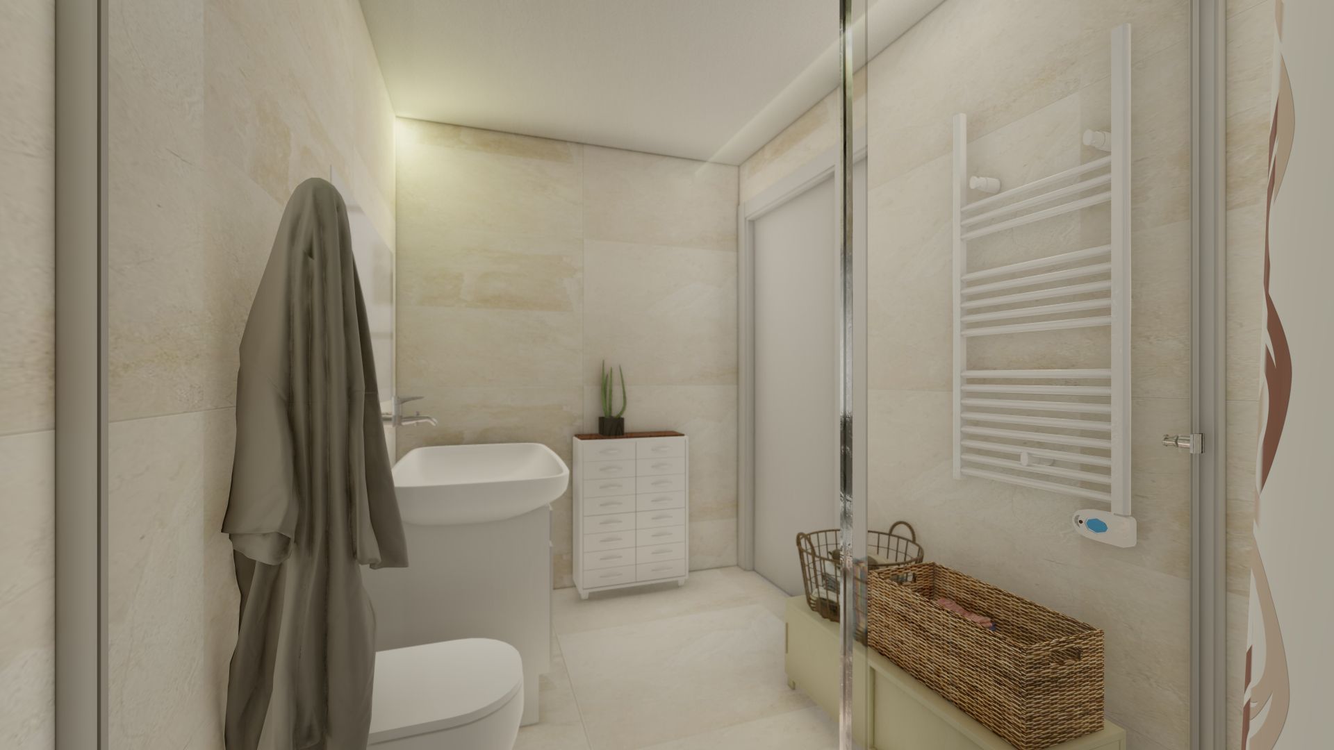 Acabados interiores de primera calidad: Los baños están equipados con porcelana de alta calidad, que incluye inodoros de doble mecanismo de descarga y platos de ducha y grifería termostática.