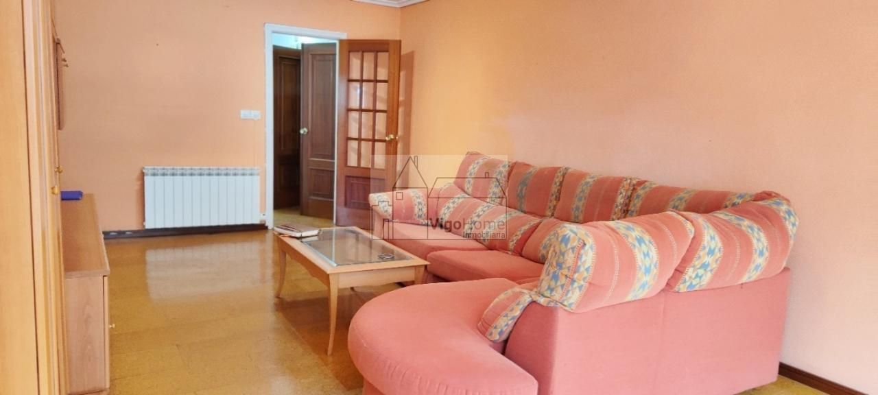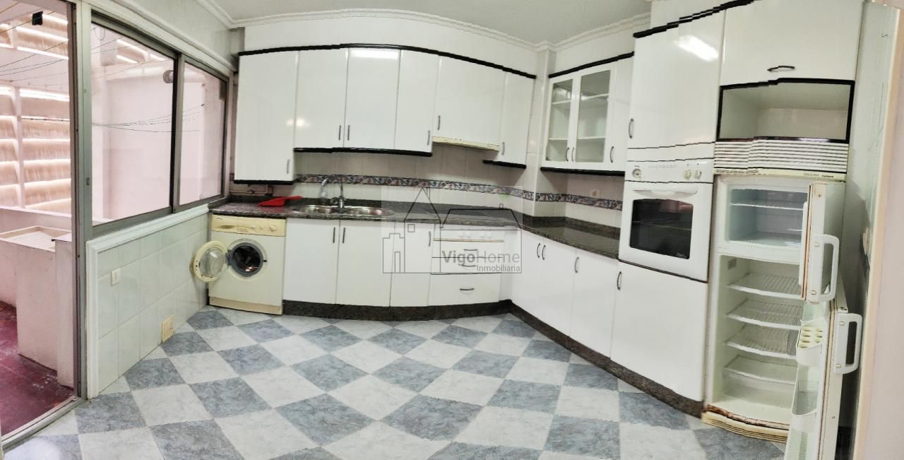 Se trata de una vivienda situada en una primera planta de la calle Soutomaior.. Con una superficie construida de 106 metros, originariamente tenía cuatro dormitorios pero ha sido reconvertido en tres. Está distribuido en un hall de entrada, salón comedor con acceso a terraza, espaciosa cocina dividida en dos ambientes, con zona de lavandería y tendedero, tres dormitorios ( dos de ellos con armarios empotrados) y dos cuartos de baño.