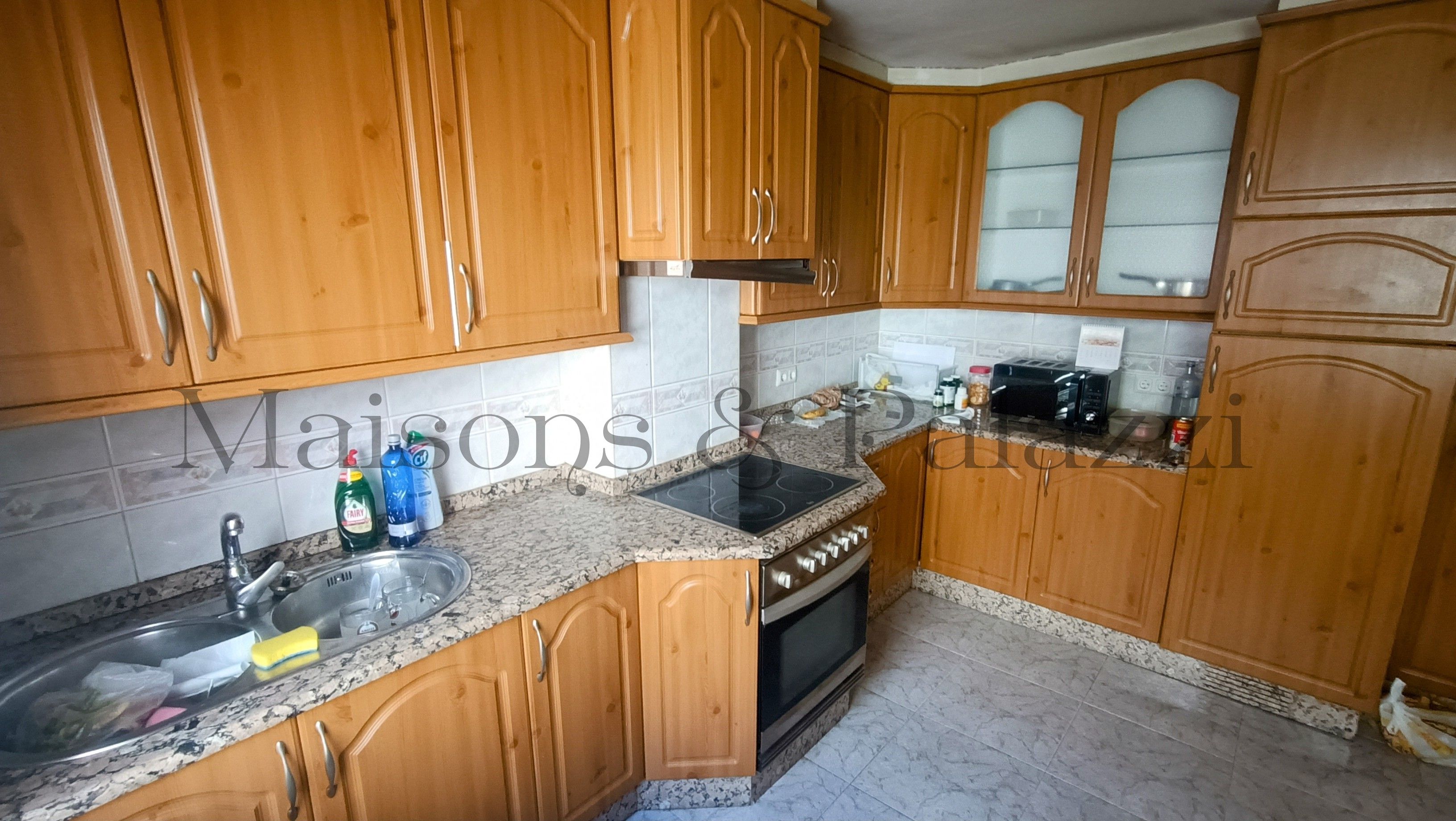 La vivienda consta de tres dormitorios, una amplia cocina, un baño completo, un aseo y un espacio añadido reformado y totalmente acondicionado con aislamiento, insonorizado, cerrado con ventanas de aluminio y cristales climalit, con filtro solar, que originalmente era una terraza y que se utilizaba como salón.