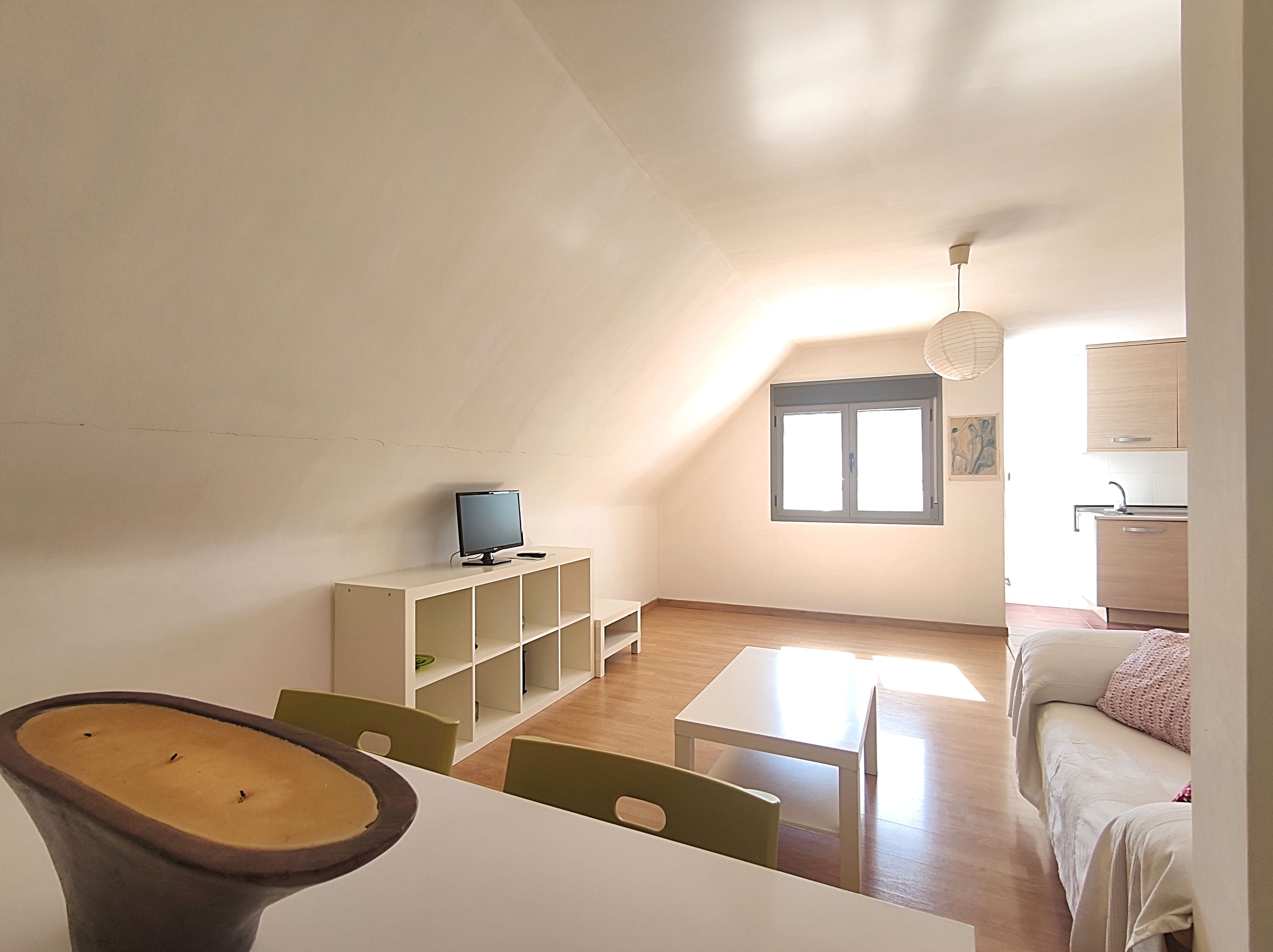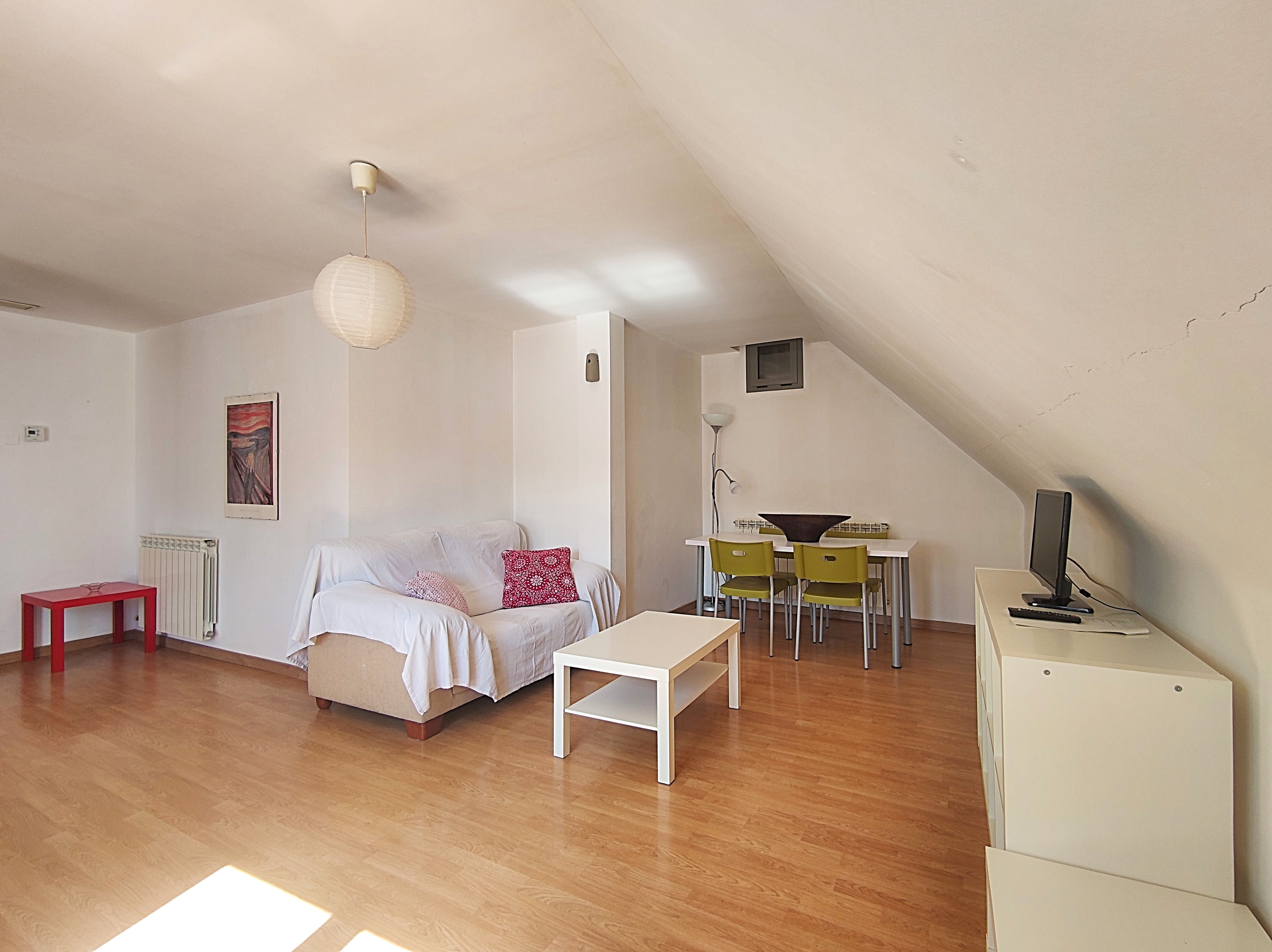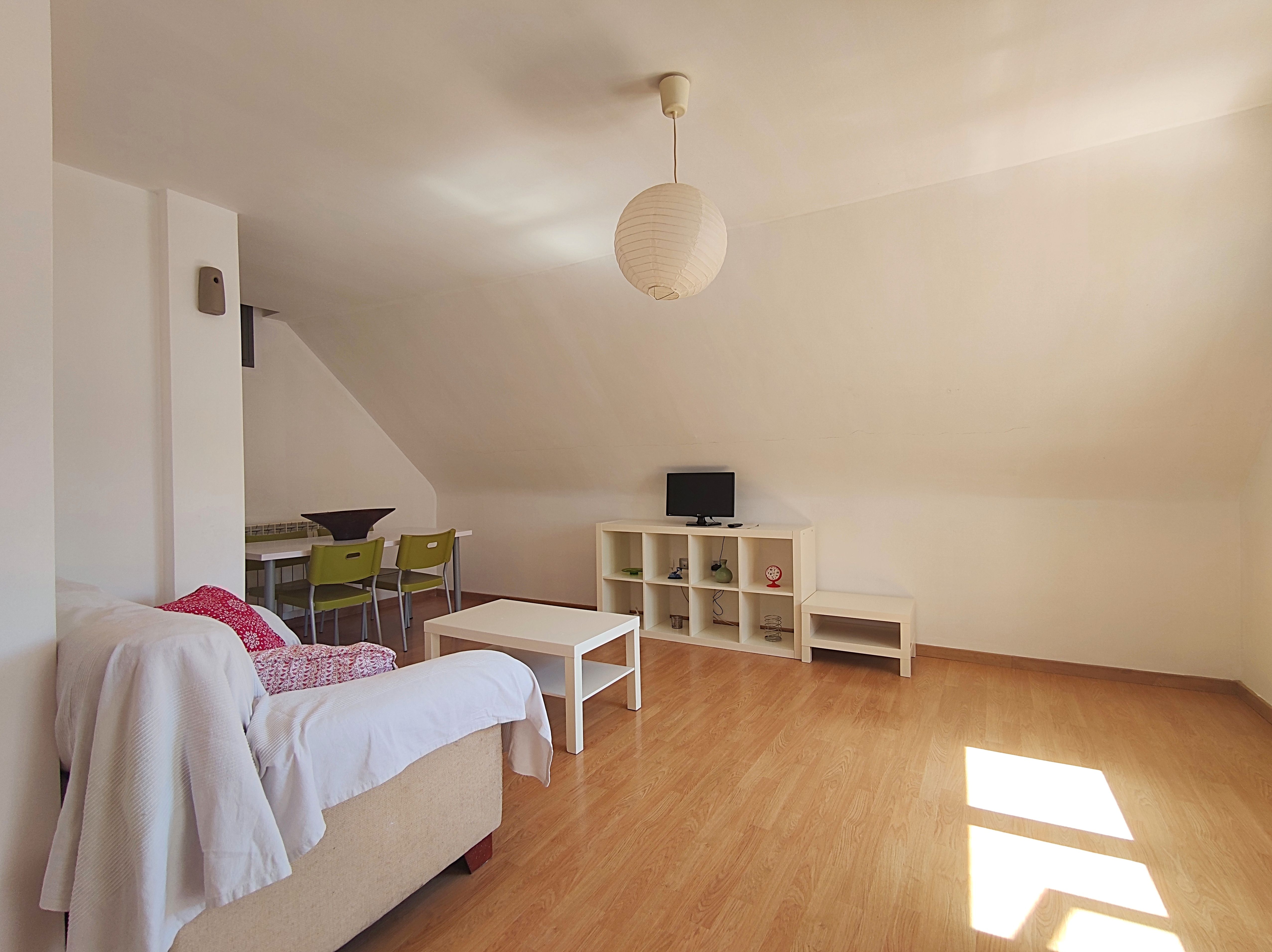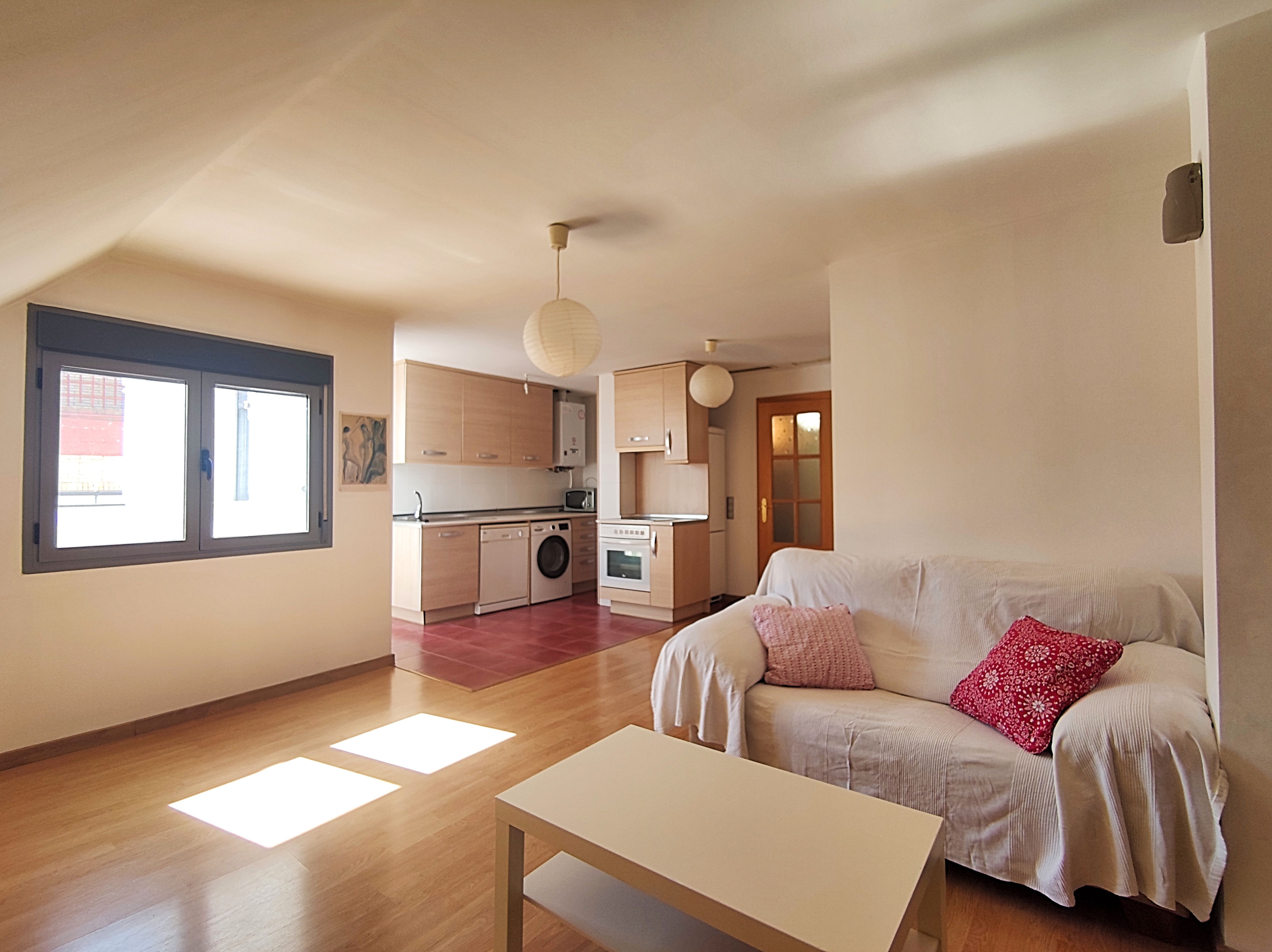 Con dos dormitorios (uno doble y otro individual) y dos baños completos, este coqueto atico ha sido diseñado para aprovechar al máximo cada rincón.