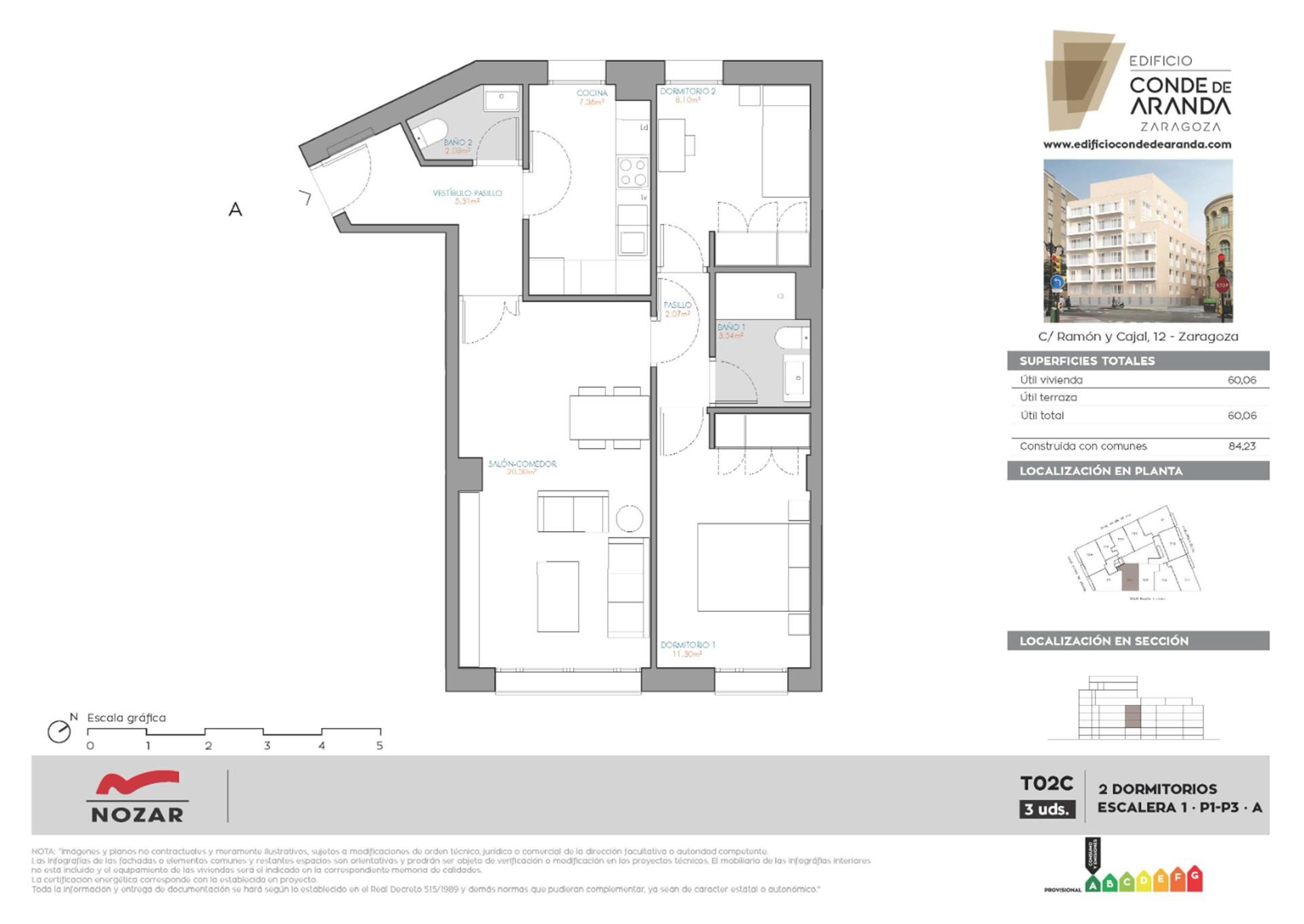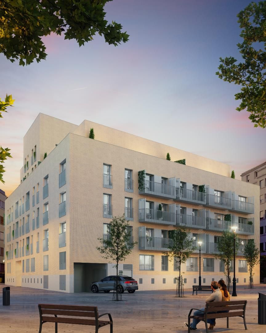 "53 viviendas de 1, 2 y 3 dormitorios con terraza y áticos, con trastero y las mejores calidades: doble placa de yeso laminado, armarios vestidos con acabado textil, cocinas equipadas, cuartos de baño alicatados por completo y climatización por suelo radiante y refrescante con aerotermia.